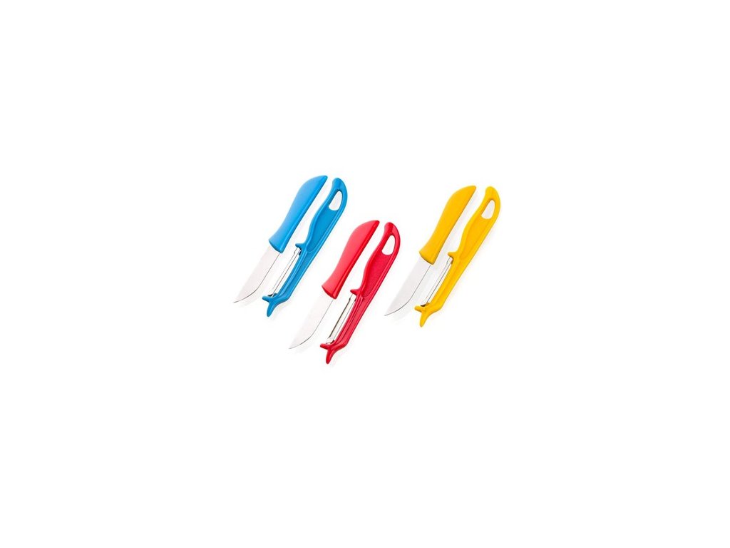 Krájecí sada APETIT složená z nože o délce 15 cm a škrabky 13,5 cm. Nůž i škrabka jsou vyrobeny z nerezavějící oceli, rukojeť z odolného plastu.Škrabka je vhodná pro praváky i leváky. V nabídce v barevných provedeních - červená, žlutá a modrá.
