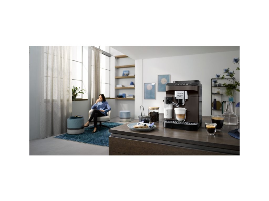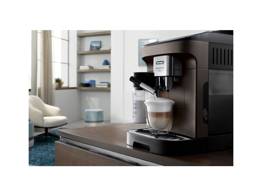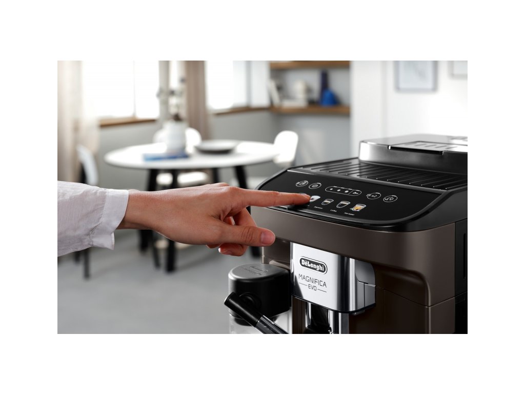 Magnifica Evo spojila zkušenosti, know-how a technologie společnosti De'Longhi pro ty nejlepší výsledky v šálku. Od zrnka kávy do vašeho šálku. Vytvořte si svůj vlastní mléčný nápoj “My Latte“ s vámi preferovaným množstvím napěněného mléka. Kávovar poté připraví espresso, aby byl váš nápoj dokonalý. Speciálně navržený pro zákazníky, kteří vstupují do světa plnoautomatických kávovarů a hledají moderní design a přípravu nápoje jedním stisknutím tlačítka.