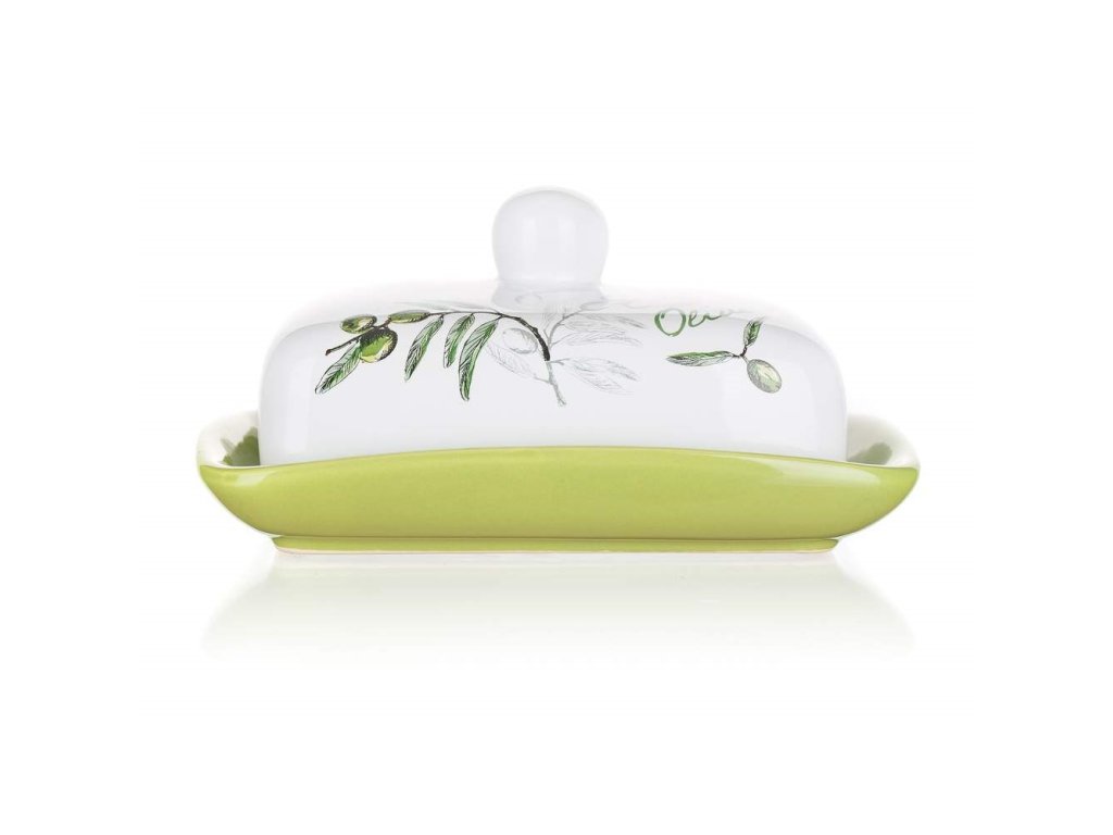 Máslenka OLIVES - rozměry: 17,5 x 13 x 8 cm. Je vyrobená z keramiky s dekorem olivy.- Barva: Bílá / zelená