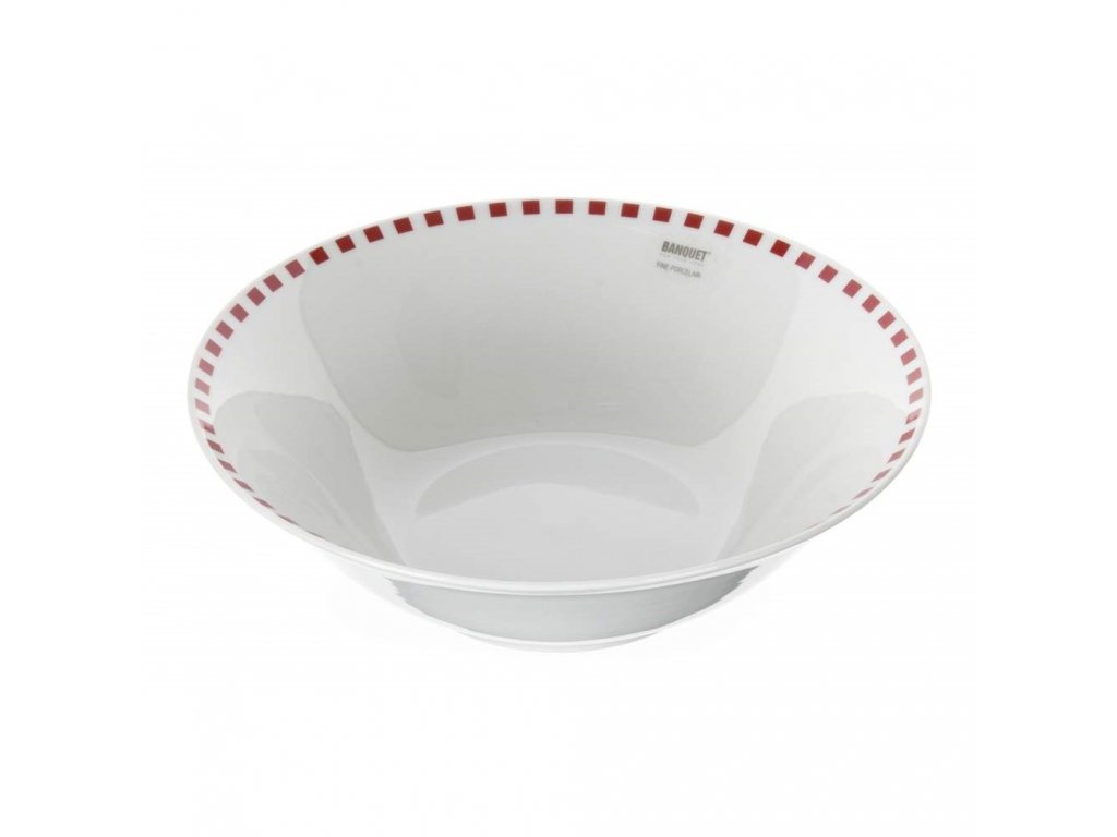 Mísa 23 cm CUBITO RED, materiál - porcelán, bílá glazura s červeným dekorem. Mísu lze používat do mikrovlnné trouby a mýt v myčce na nádobí.