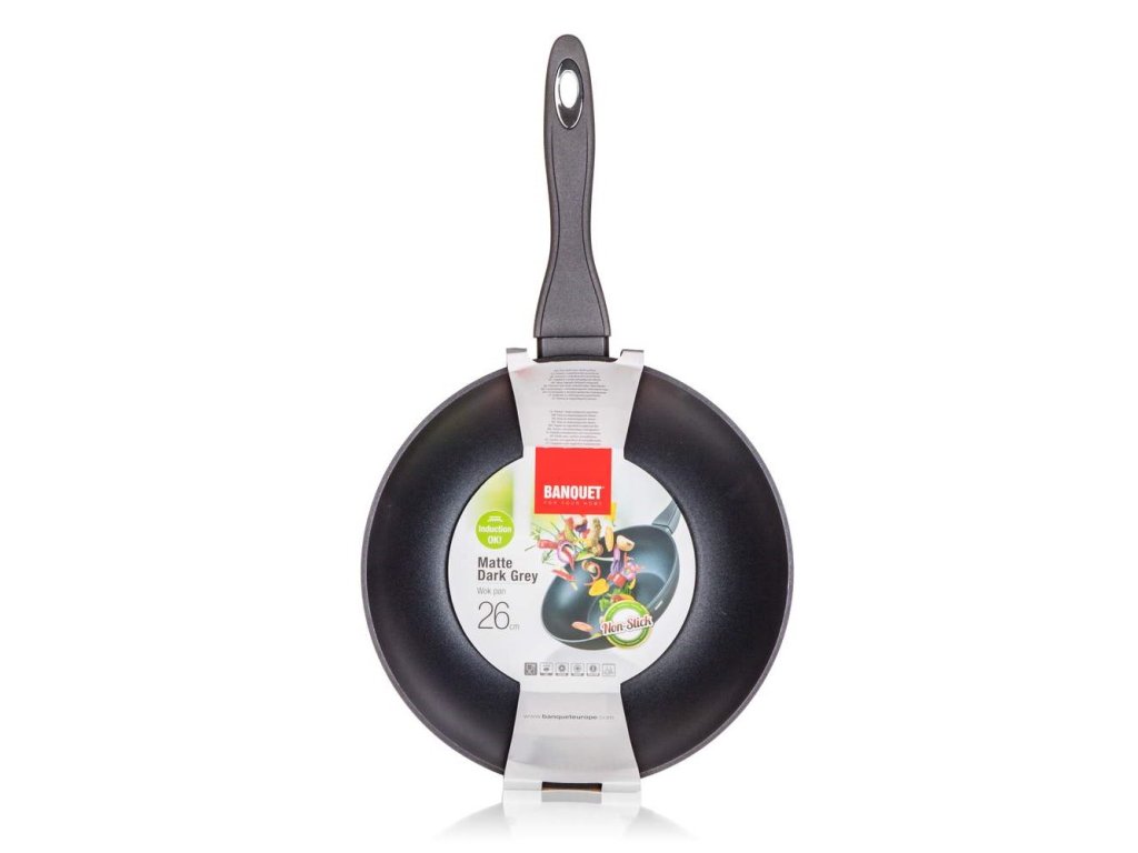 BANQUET Pánev WOK s nepřilnavým povrchem Matte Dark Grey 26 x 7,2 cm