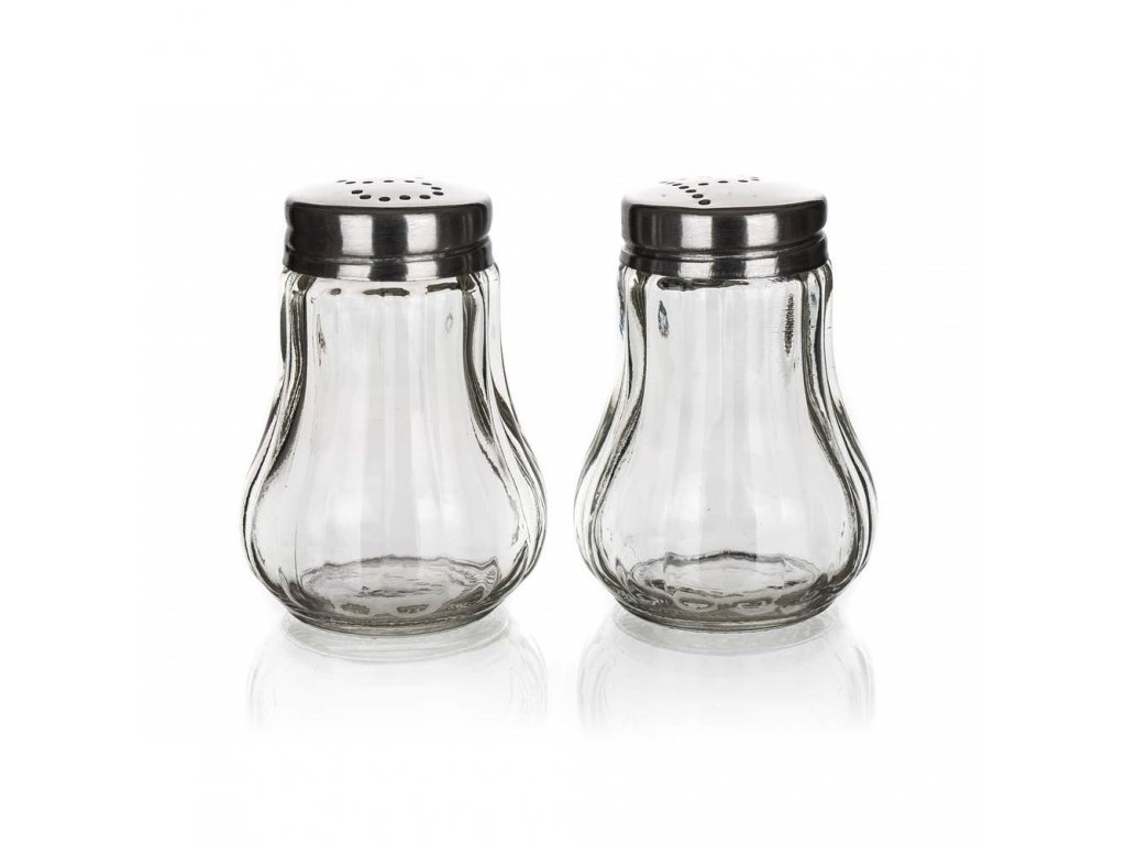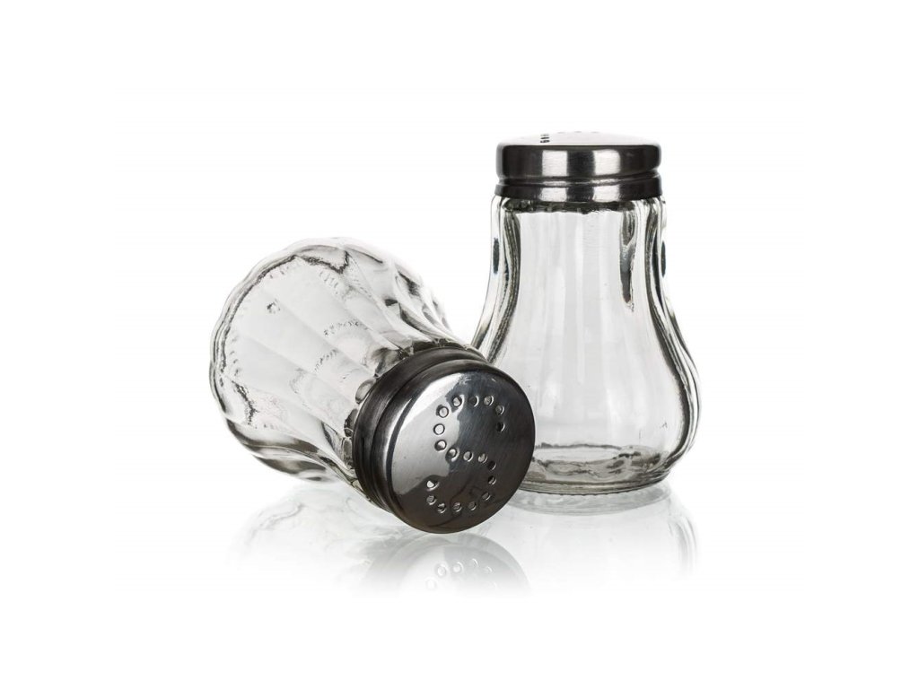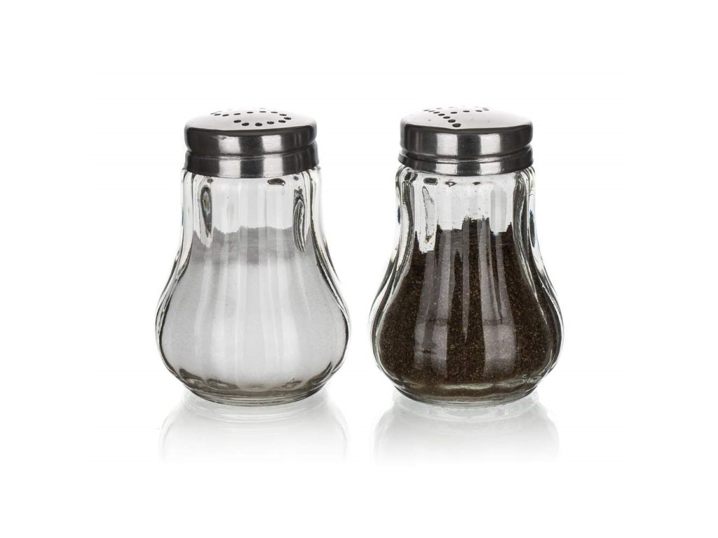 Sada solnička a pepřenka kulatá MONO, 2 ks. Víko: nerez 18/0, síla nerezi 0,40 mm, tělo: sklo.Doplňkové parametry
