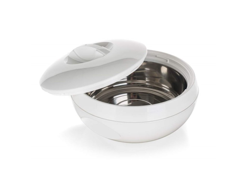 Termohrnec s poklicí AVANZA 3,5 l, bílá je praktický pro uchovávání teplých pokrmů. Ocení ho hlavně kuchaři a kuchařky při uskladnění hotových pokrmů před samotným servírováním.Termohrnec se vyrábí v několika velikostech. Vnitřek hrnce tvoří nerezová vložka, výplň mezi stěnami je z PUR pěny pro zachování vynikající izolace při skladování či přenášení potravin.- Barva: Bílá