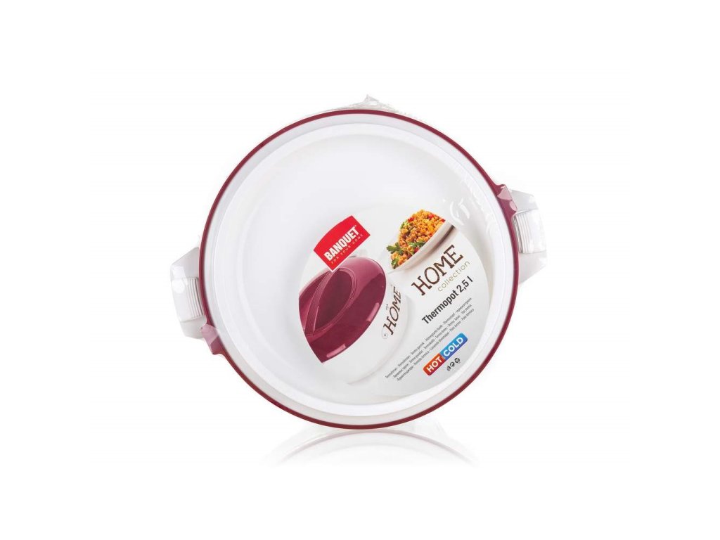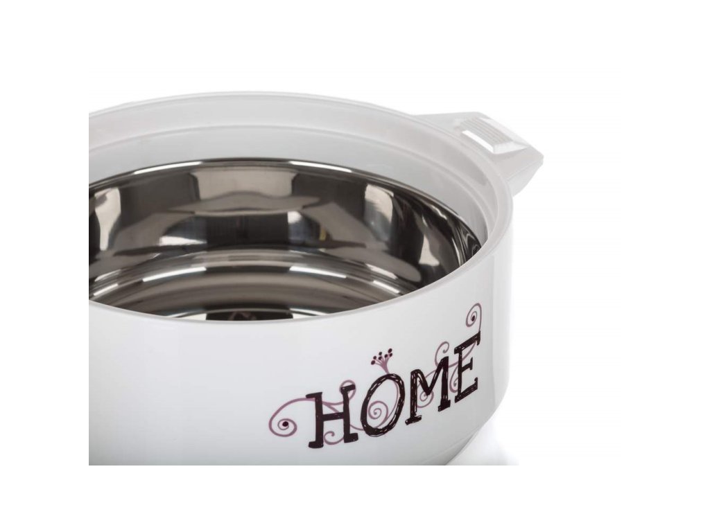 Termohrnec s poklicí HOME 2,5 l je praktický pro uchovávání teplých pokrmů. Ocení ho hlavně kuchaři a kuchařky při uskladnění hotových pokrmů před samotným servírováním. V barevném provedení bílá-bordó s dekorem HOME. Termohrnec se vyrábí v několika velikostech. Vnitřek hrnce tvoří nerezová vložka, výplň mezi stěnami je z PUR pěny pro zachování vynikající izolace při skladování či přenášení potravin.Buďte první, kdo napíše příspěvek k této položce.