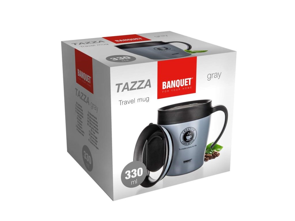 BANQUET Termohrnek cestovní TAZZA 330 ml, šedý
