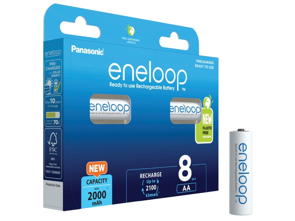eneloop je recyklovatelná dobíjecí baterie s dlouhou životností, předem nabitá, šetřící energii a peníze, kterou lze nyní nabít a vybít dokonce až 2100krát.