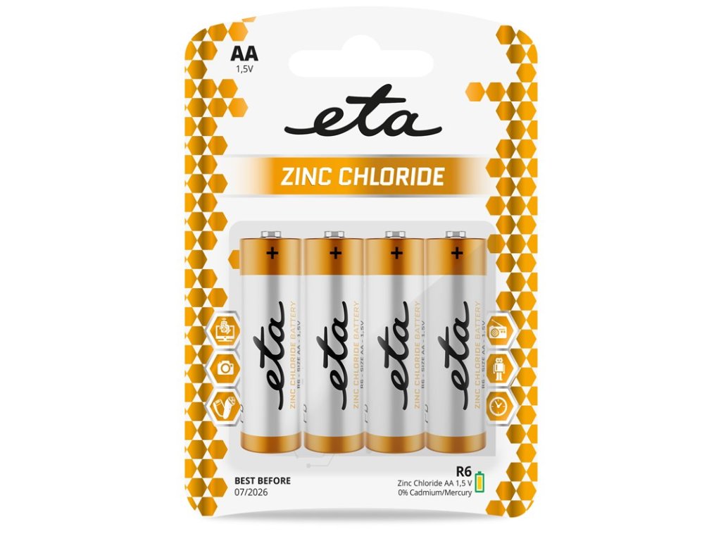Baterie zinkochloridová ETA AA, R6, blistr 4ks