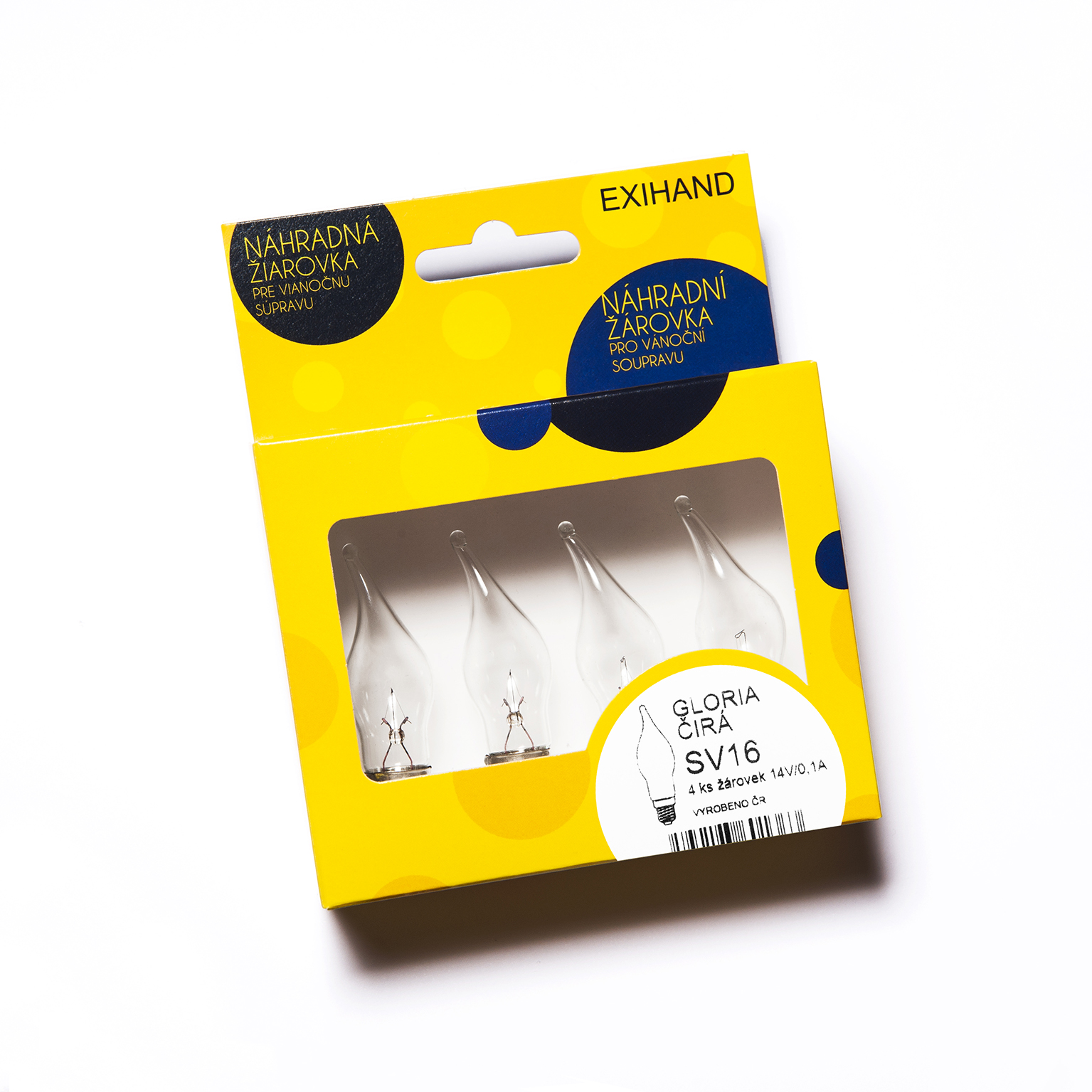 Blistr 4 žárovky Gloria čirá, 14V/0,1A