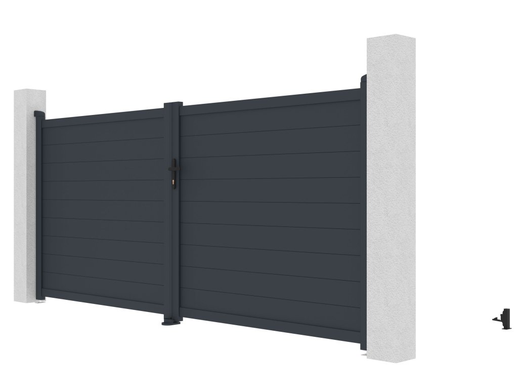 Vjezdovou bránu Orlando jsme vyrobili z lehkého, pevného a hlavně bezúdržbového hliníku. Je odolný vůči prasknutí i prohnutí, nezreziví a antracitový odstín, nanesený práškovým nástřikem, dodává vjezdové bráně atraktivitu a stálobarevnost. Zesílený profil dvoukřídlé vjezdové brány Orlando vám navíc v budoucnu umožní montáž elektrického otevírání.