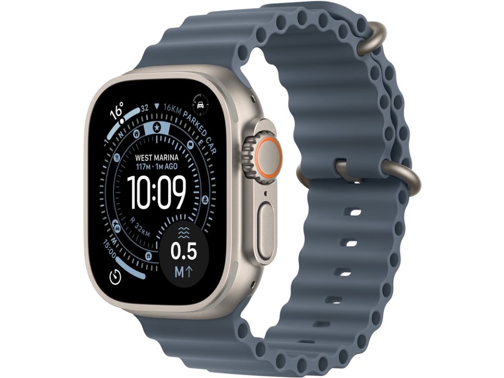 Chytré hodinky Apple Watch Ultra 3 GPS + Cellular 49mm přírodní titan - ocelově modrý oceánský řemínek