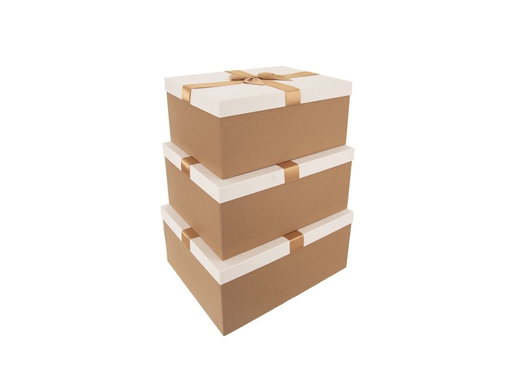 Dárkové krabice s víkem na dárky. Univerzální použití. Krabice jsou pevné a odolné, můžete je využít vícekrát.- Sada 4 ks, krabice se stuhou