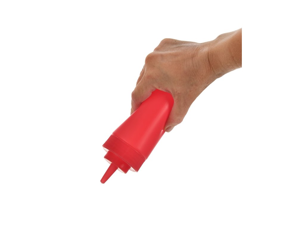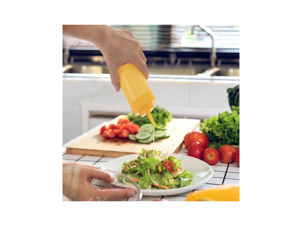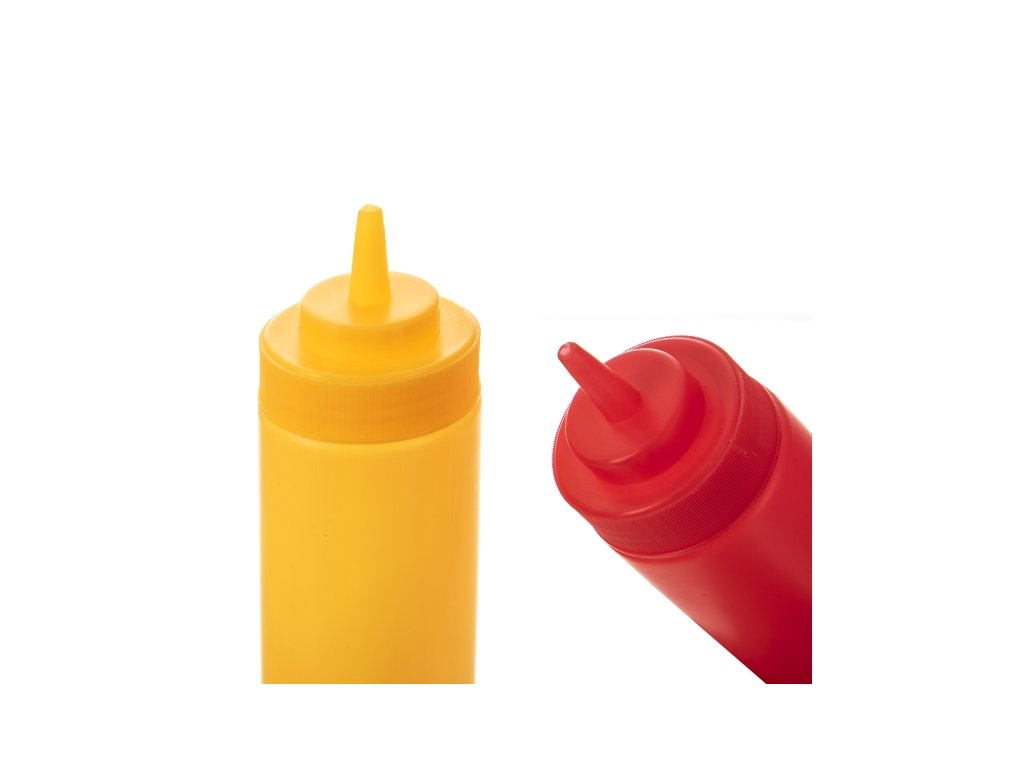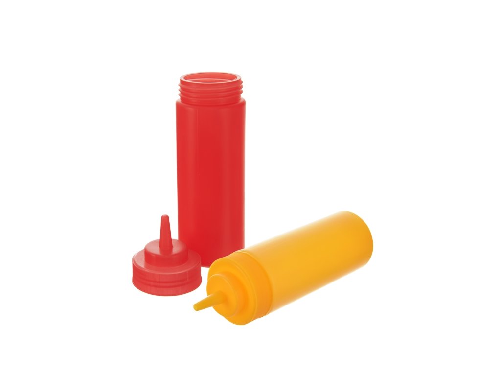 Tyto barevné plastové láhve znáte nejen z bufetů a rychlého občerstvení. I v domácnosti je využijete pro dávkování hořčice a kečupu, např. při grilování, na zahradní párty, při přípravě domácích hot dogů nebo hamburgerů. Lze je snadno zmáčknout, otvorem ve víčku pak vyteče dochucovadlo podle potřeby. Špičaté víčko lze snadno odšroubovat a širším otvorem láhev doplnit nebo umýt.
