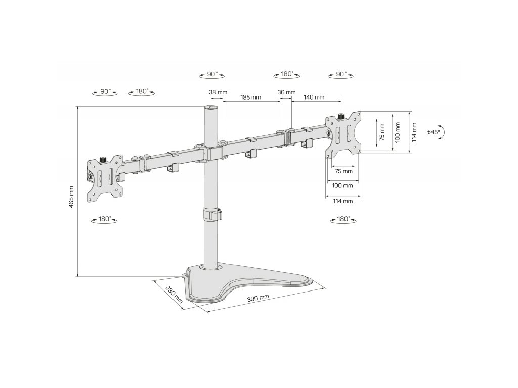 • Maximální variabilita díky 5 pohyblivým kloubům pro každý monitor (celkem 10 pohyblivých kloubů)