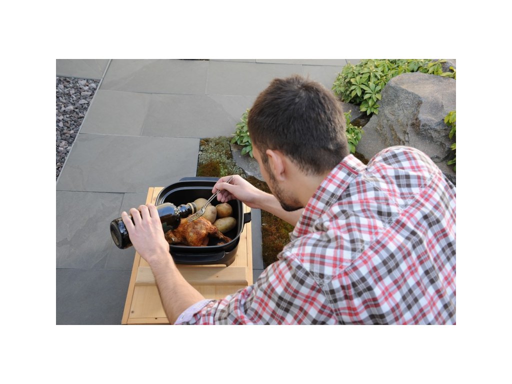 Elektrický pečicí hrnec určený pro různé způsoby přípravy jídla. Od klasického pečení masa, zapékání těstovin, až po dušení a vaření. Jídla v ní připravená neztrácejí chuť, maso nevysychá a provoz je až o 80 % úspornější než klasická trouba.