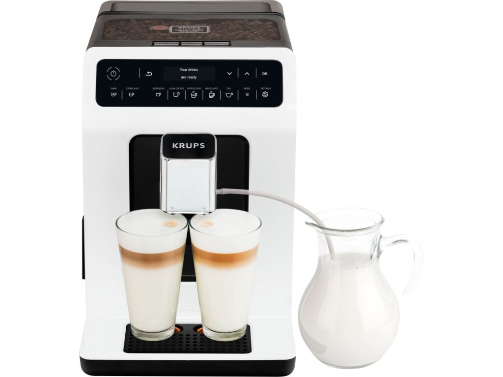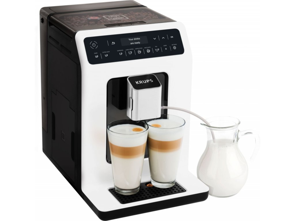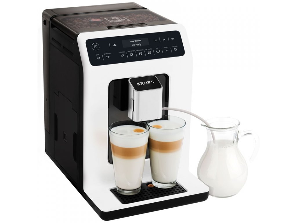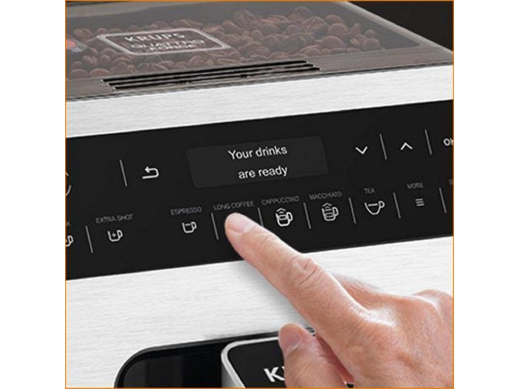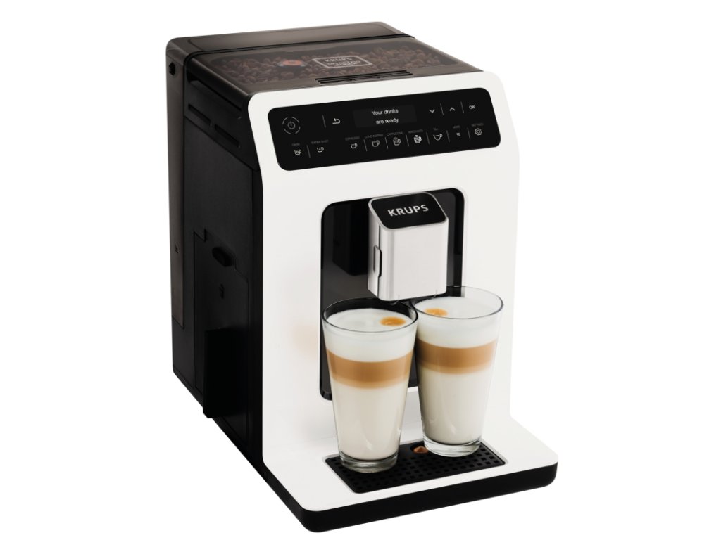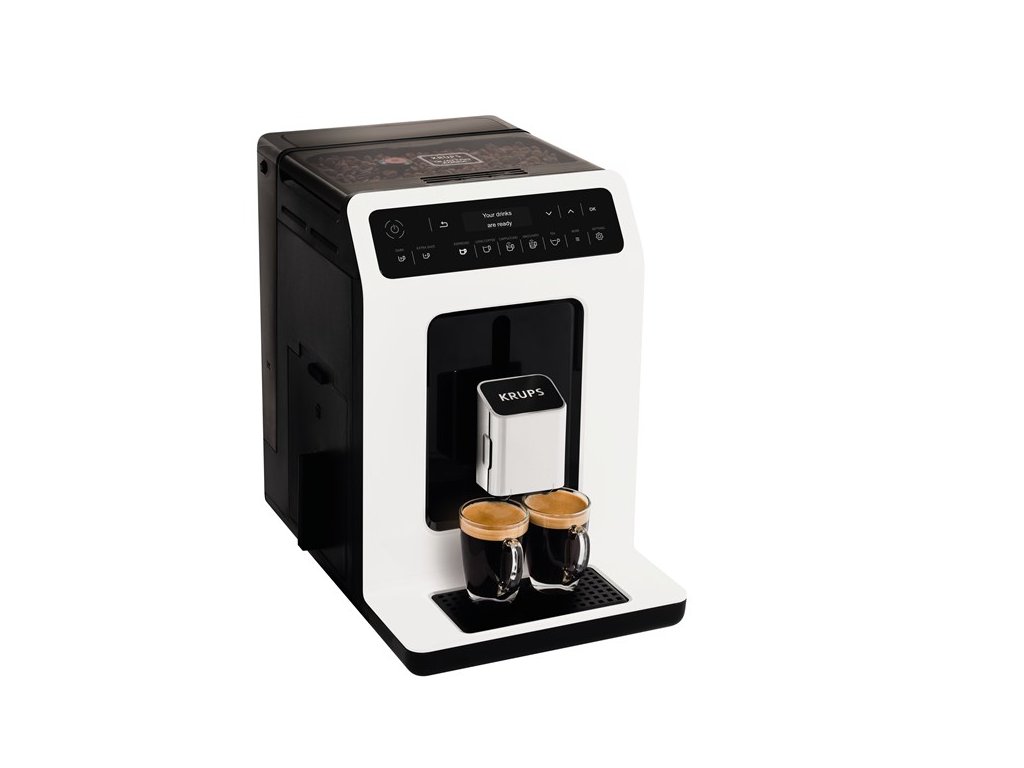 Automatický kávovar na espresso Krups Evidence EA890110 – One-Touch Cappuccino, systém Quattro Force pokrývá každý krok přípravy dokonalého espressa, optimalizované mletí, pěchování, filtrování a vypouštění
