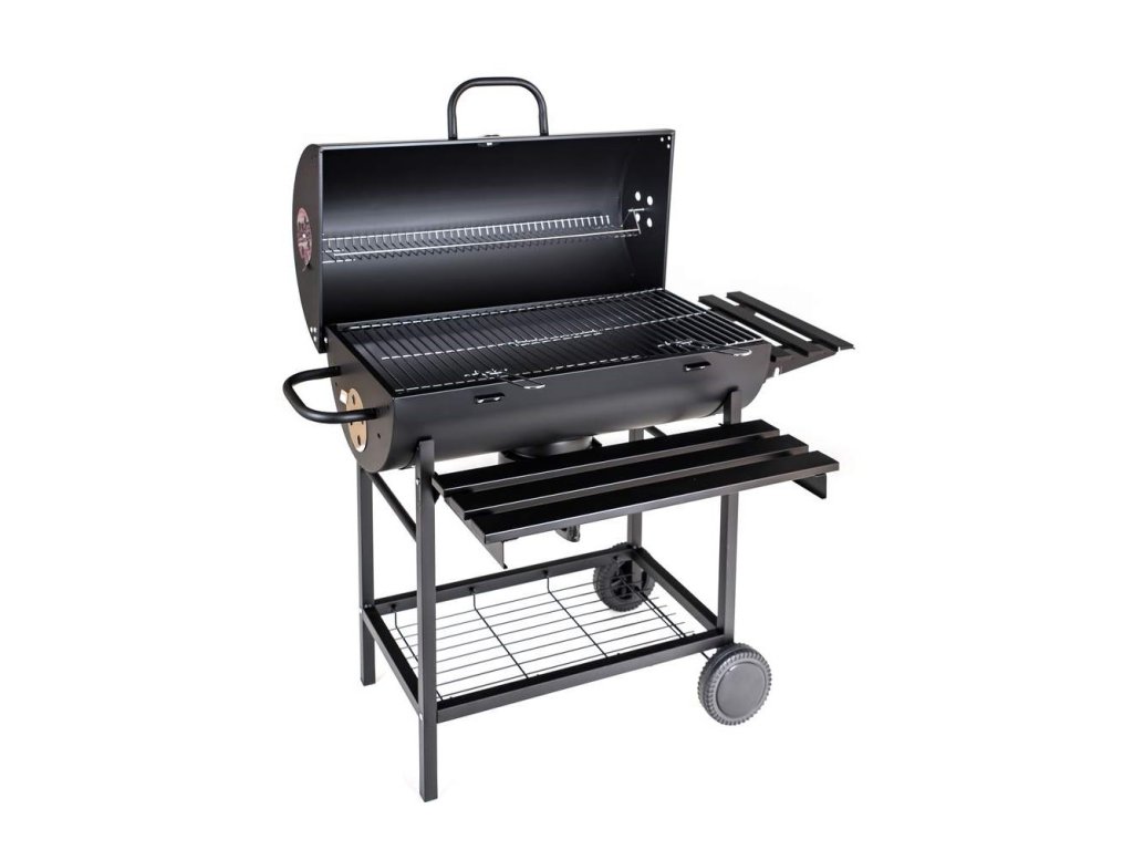 Barelový typ grilu s vestavěným popelníkem a 2 rošty (nahřívací a grilovací) z pochromované oceli. Jednoduchá konstrukce grilu zajištuje jeho stabilitu. Díky velké grilovací ploše a kvalitní přípravě pokrmů, gril využijete zejména na chatách a chalupách, ale i na zahradě. Gril je vybaven 3 odkládacími plochami, regulací přiváděného vzduchu pro možnost regulace hoření a tím i vnitřní teploty grilu, kterou je možno průběžně kontrolovat vestavěným teploměrem. Pro snadnější manipulaci