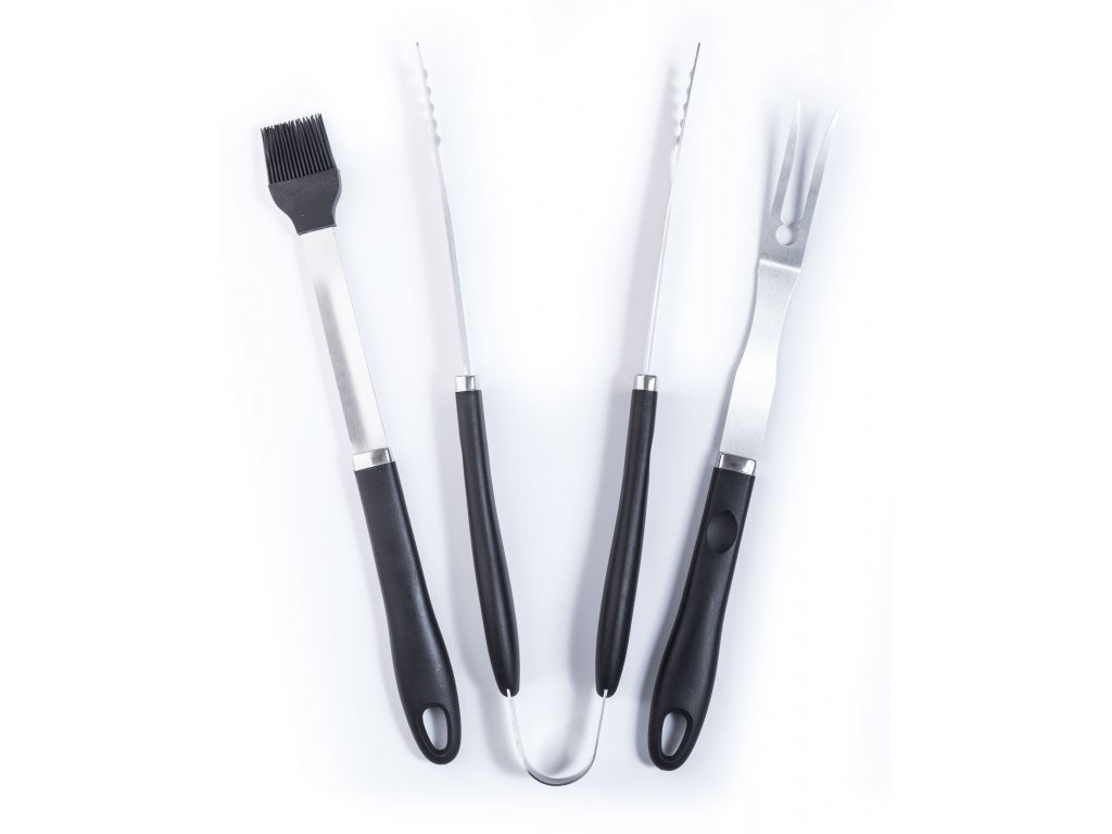 Praktické omyvatelné rukojeti z odolného plastu jsou přizpůsobeny pro pohodlné držení a díky očku na zavěšení je můžete odkládat na grilovací háčky G21. Grilovací kleště (45 cm) a grilovací vidlička (41 cm) jsou z nerezu, štětec na marinování (41 cm) je ze žáruvzdorného silikonu.