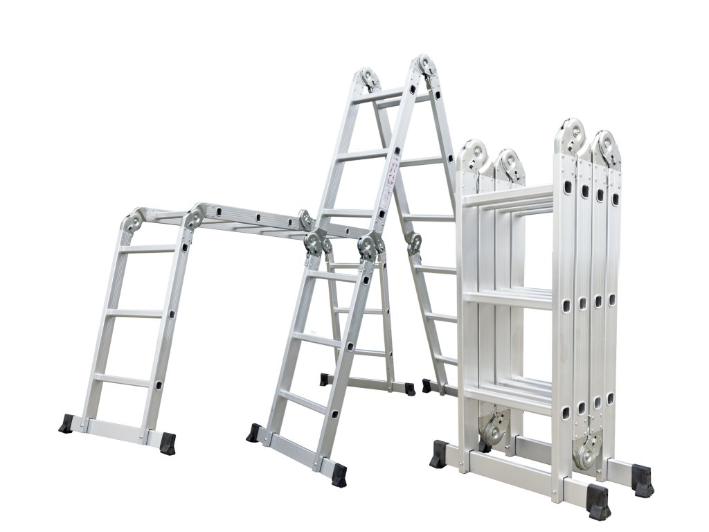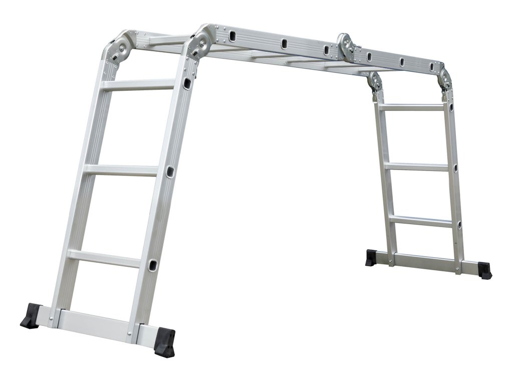 Hliníkové štafle můžete využít jednak jako dlouhý žebřík v délce až 3,7 m. Další variantou je možnost sestavit štafle jako přenosné lešení. Díky konstrukci s klouby lze štafle snadno umístit přes hřeben střechy.