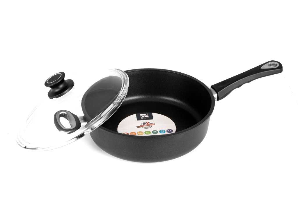 Pánev G21 Pool 28 s rukojetí a madlem pro snadné a pohodlné držení a s poklicí je odolná teplotám až do 240 °C, takže ji můžete bez obav vložit i do trouby.