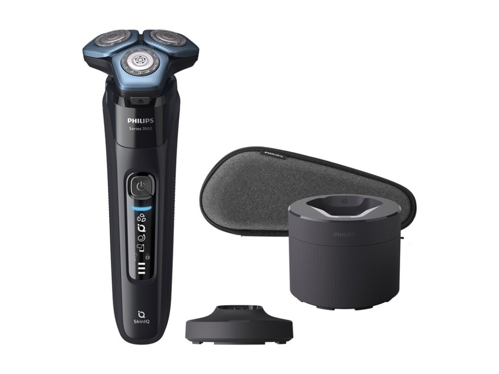 Pánský elektrický holicí strojek Philips řady 7000 pro citlivou pleť a suché i mokré holení s bluetooth připojením k chytrému telefonu a osobním plánem pro řešení problémů s pletí při holení.