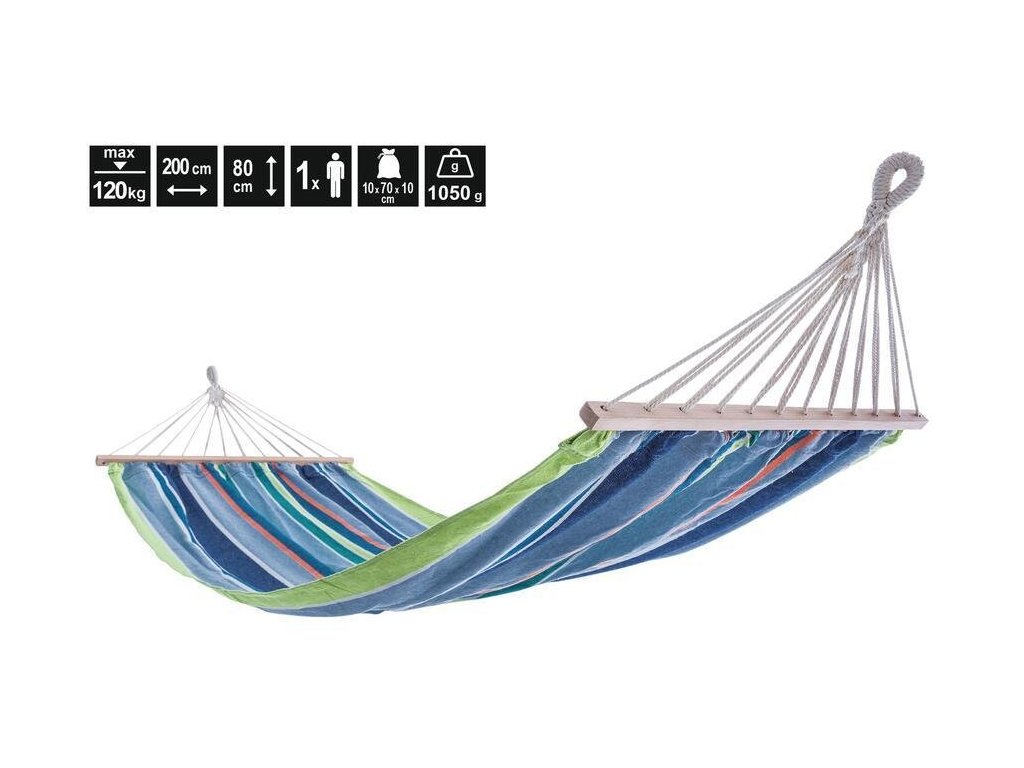 Síť můžete v případě potřeby smotat, čímž ušetříte místo při skladování nebo přepravě. Navíc ji tak máte kdykoliv po ruce. Je určená pro 1 osobu s hmotností maximálně 120 kg.