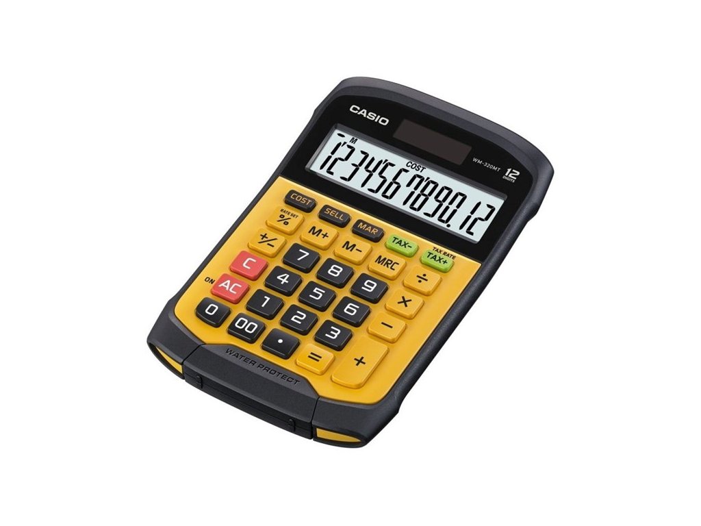 Casio WM 320 MT WATERPROOF je stolní kalkulačka s velkým 12místným LCD displejem, díky němuž se už nikdy neztratíte v záplavě čísel. Vyniká odolnou konstrukcí vůči vodě dle certifikace IP54, takže se hodí i do náročnějšího prostředí, čemuž odpovídá také odnímatelná a omyvatelná klávesnice pro snadnější údržbu. Funguje díky duálnímu napájení – tedy na baterii, kterou šetří solární panel, a tak vám vydrží velmi dlouho bez výměny baterky.