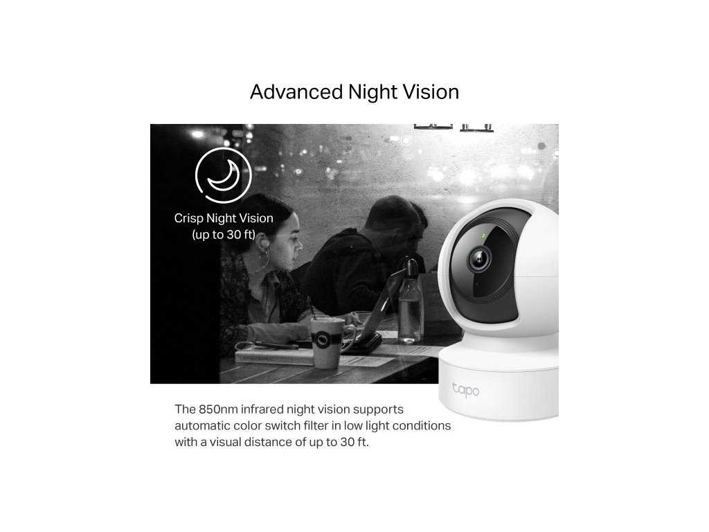 Wi-fi kamera TP-Link Tapo C212 zajistí bezpečí ve vaší domácnosti. Umožňuje horizontální i vertikální rotaci a je vybavená pokročilým nočním viděním. Během něj zaznamenává dění kolem, i když je tma nebo se setmí. Kamera podporuje karty microSD s kapacitou až 512 GB (není součástí balení). 3megapixelový snímač pořizuje video záznam s vysokým rozlišením.