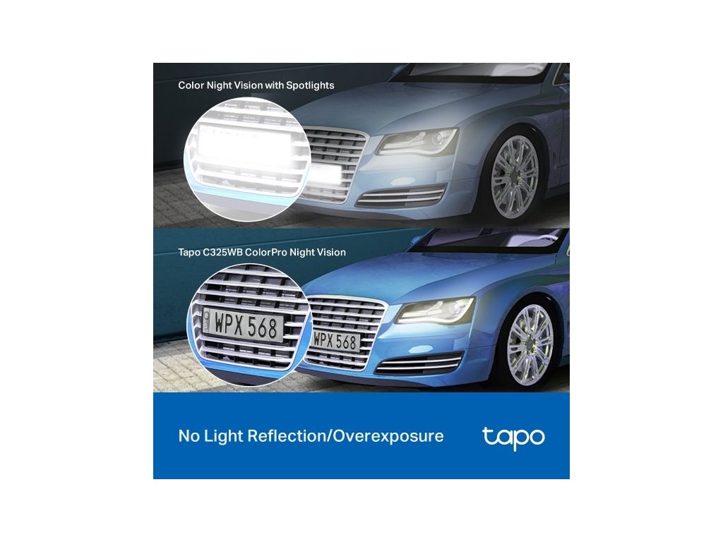 Bezpečnostní kamera Tapo C325WB natáčí ve dne v noci bez sebevětších obtíží. Barevný noční režim s technologií ColorPro a HDR zajistí dokonalý obraz nahrávaný za slabého okolního osvětlení. Barvy působí přirozeně i za tmy a neunikne vám žádný detail ani v temném zákoutí vašeho pozemku. Nepotřebujete venkovní světlo, takže ušetříte za energie. Zároveň žádné světlo neláká poletující hmyz, který by mohl spustit falešný poplach.