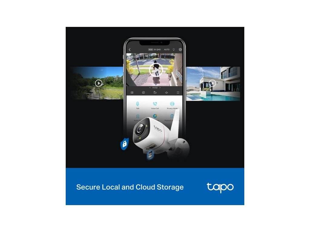 Jednotka Tapo C325WB je vybavena paměťovým slotem, který podporuje microSD karty o maximální kapacitě až 512 GB. Dalším způsobem zálohy je cloudové úložiště Tapo Care, které poskytuje prostor pro vaše bezpečnostní záznamy. Nahrané video se uloží do cloudu na dobu 30 dnů. Zpětně si ho přehrajete v mobilní aplikace Tapo. Získáte tedy stálý přístup k vašim záznamům, i když dojde k odcizení nebo odpojení kamerového systému.