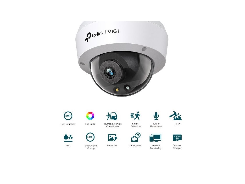 Zajistěte si ochranu svého pozemku s venkovní dome síťovou kamerou VIGI C240 od značky TP-Link. Kamera sleduje dění kolem a poskytne vám čistý barevný obraz i za temných nocí. Vaše firma zůstane v co největším bezpečí. VIGI C240 s plnobarevným nočním viděním s maximálním rozlišením 4 MPx monitoruje okolí díky objektivu s velkou světelností, senzoru s vysokou citlivostí a přídavnému osvětlení.