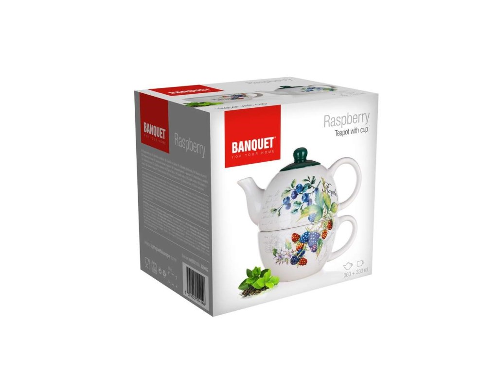 Konvička se šálkem RASPBERRY jsou vyrobeny z keramiky v bílé glazuře s dekorem maliny a zeleným víčkem konvice. Objem konvice je 360 ml a objem šálku 330 ml. Konvici se šálkem je možné mýt v myčce na nádobí, ale pro zachování dokonalého vzhledu, doporučujeme umývat ručně.Doplňkové parametry