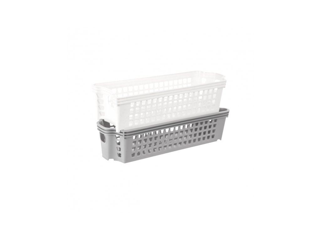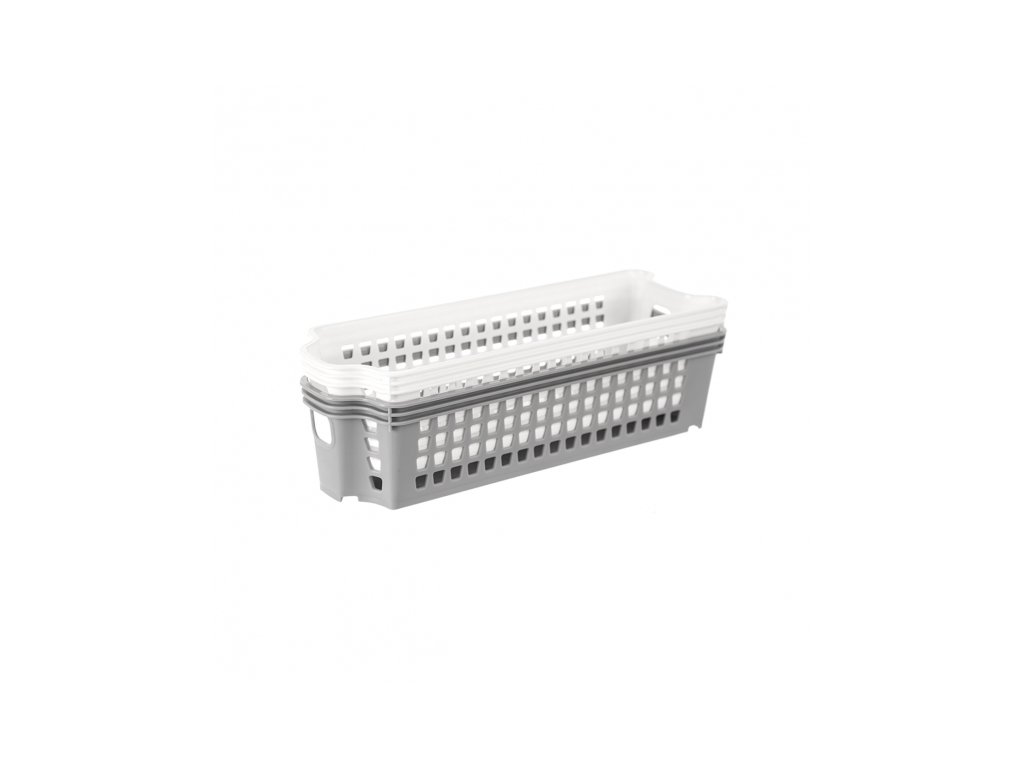 Košík využijete v kuchyni na uložení potravin - koření, ve špajzu, všude v domácnosti, v dílně, v koupelně na uložení drobností... Košíky jsou stohovatelné. Materiál: plast. Assort barev. Rozměry: 28x9,5x7 cm.Doplňkové parametry