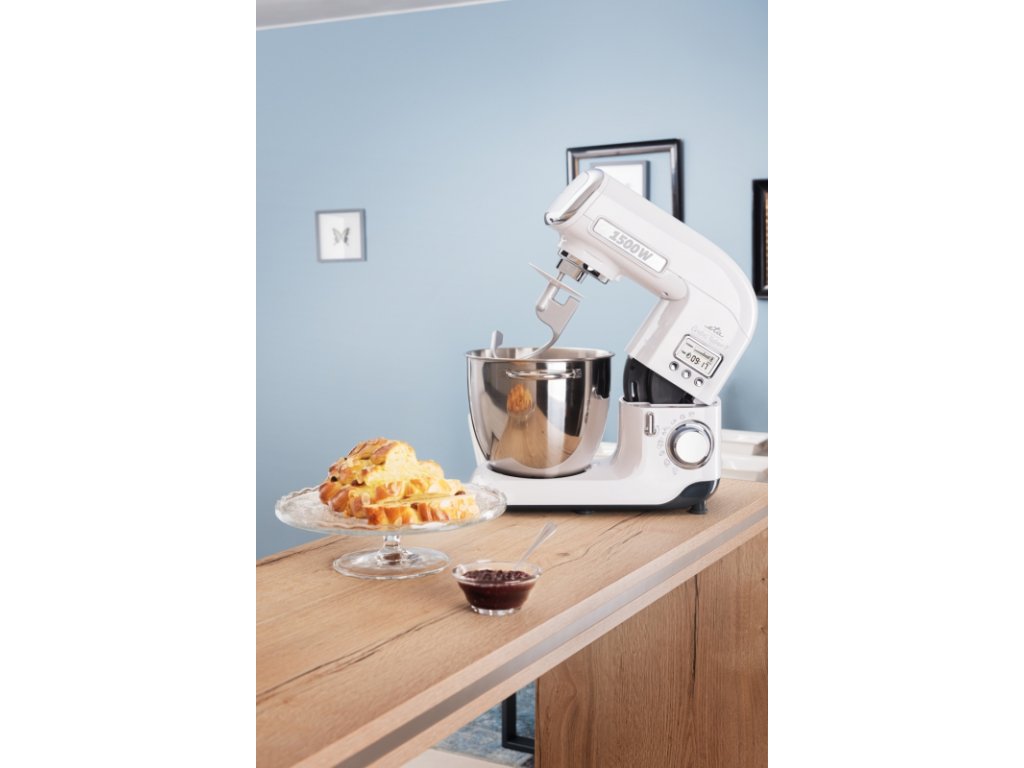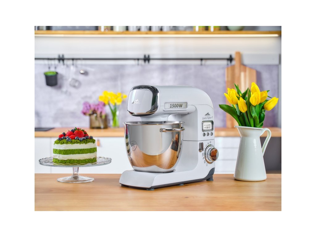 * Velkokapacitní nerezová mísa o objemu 6,7 l, včetně průhledného krytu (až 2,5 kg těsta)