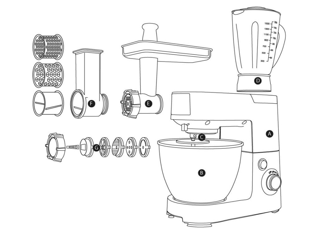 Míchá, strouhá, hněte. Díky speciálnímu nástavci na cukroví vytvaruje cukroví na všechny druhy oslav a svátků. Umele maso, připraví nudle, uhněte vláčné i tužší těsto na kynutí. Umixuje dokonale hladké smoothie a nastrouhá vše od oříšků po tvrdou kořenovou zeleninu.