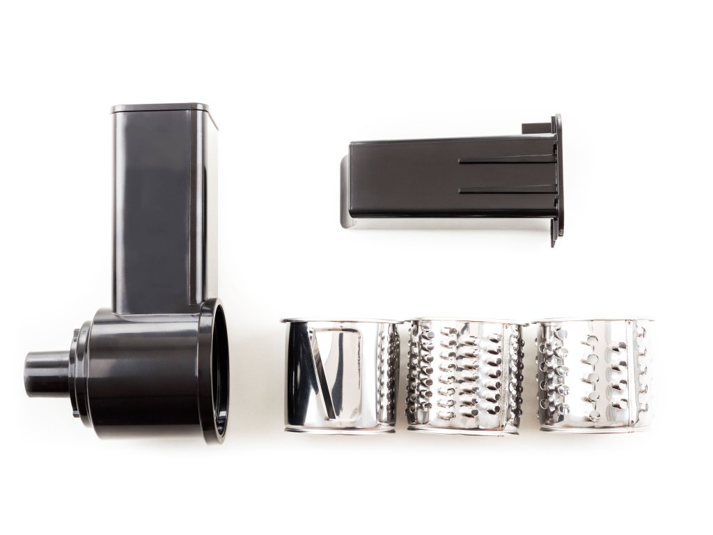 Struhadlo obsahuje 3 typy nástavců, které vám zaručeně ulehčí přípravu. Jeden nastrouhá oříšky, druhý během pár sekund připraví dokonale tenké plátky zeleniny, třetí ozdobí vaše špagety sýrovou čepicí nebo najemno nastrouhá brambory do křupavého bramboráku.
