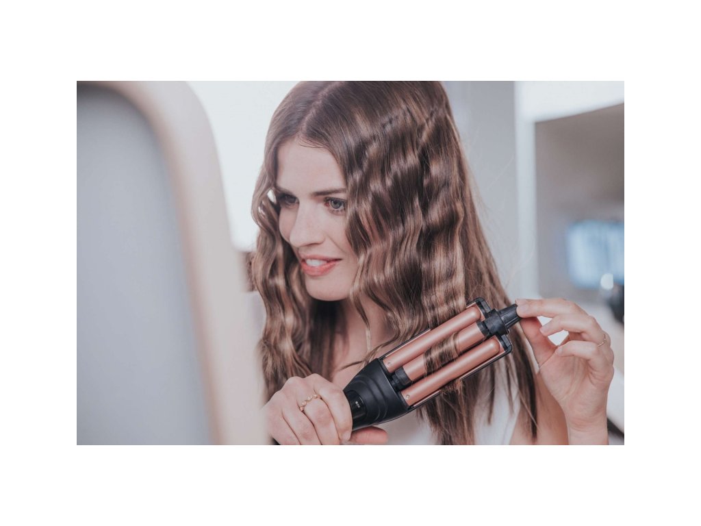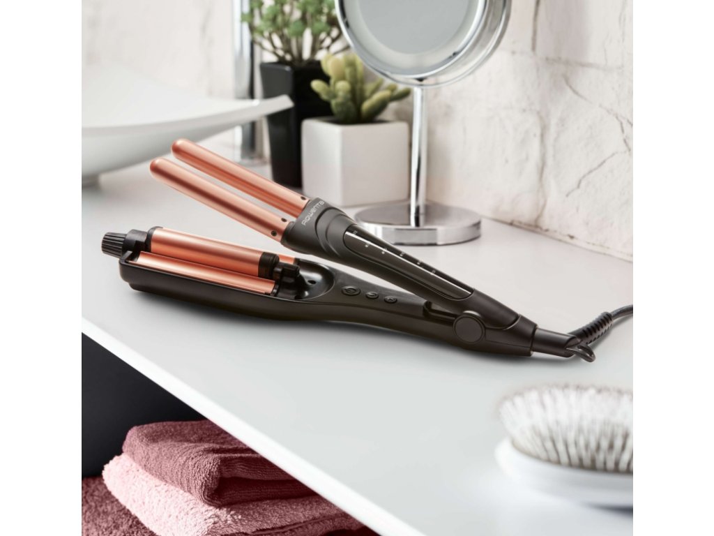 Vlnkovač na vlasy Rowenta WAVES ADDICT CF4710 vám umožňuje popustit uzdu fantazii a vytvářet nejrůznější druhy účesů. Díky čtyřem polohám můžete měnit velikost vln: vyberte si mezi běžným stylem vhodným do práce, letním vzhledem s plážovými vlnami, slavnostním vzhledem v hollywoodském stylu nebo třeba trendy vzhledem s vlnitým mikádem.