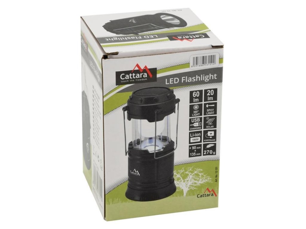 LED svítilna Cattara kempingová vysouvací 20/60lm nabíjecí, černá