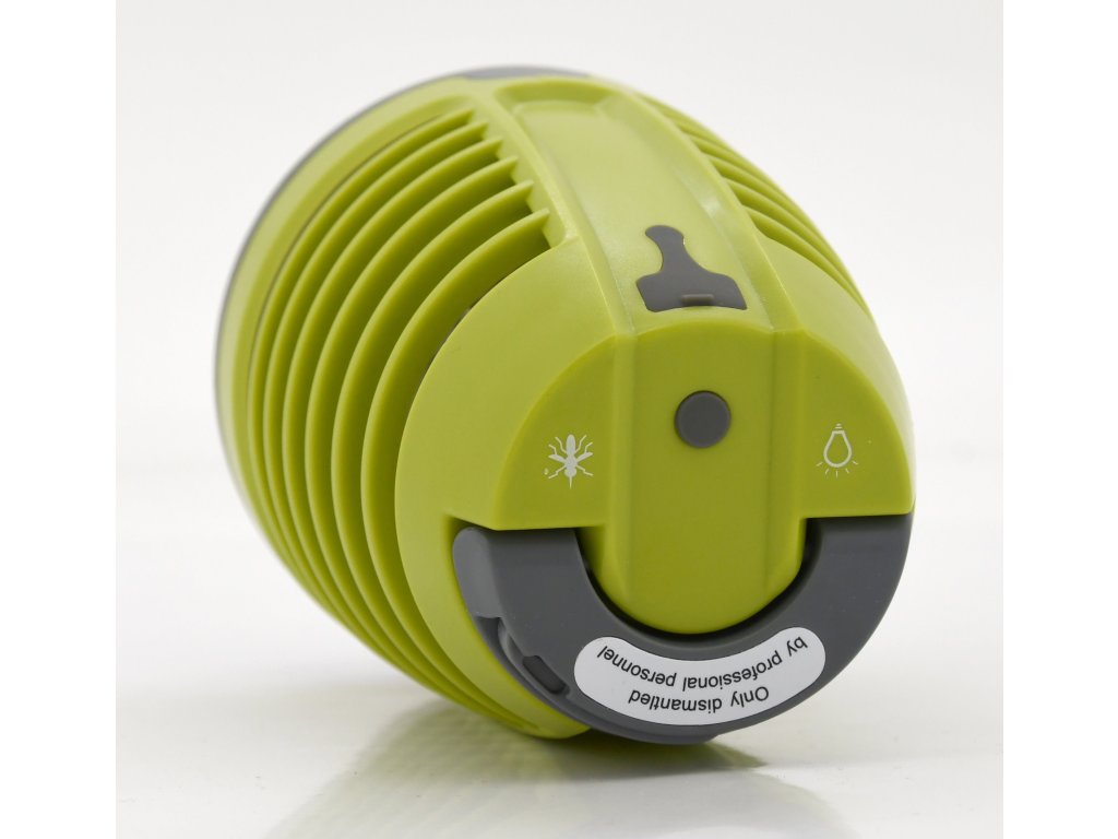 SMD LED vám zajistí běžné osvětlení se světelným tokem 70 lm. Na vrchní straně se navíc nachází ovládání. Vyberete si, zda chcete použít lapač nebo svítilnu a zmáčknete příslušné dotykové tlačítko. Svítilnu postavíte na stůl nebo zavěsíte za výklopný háček.