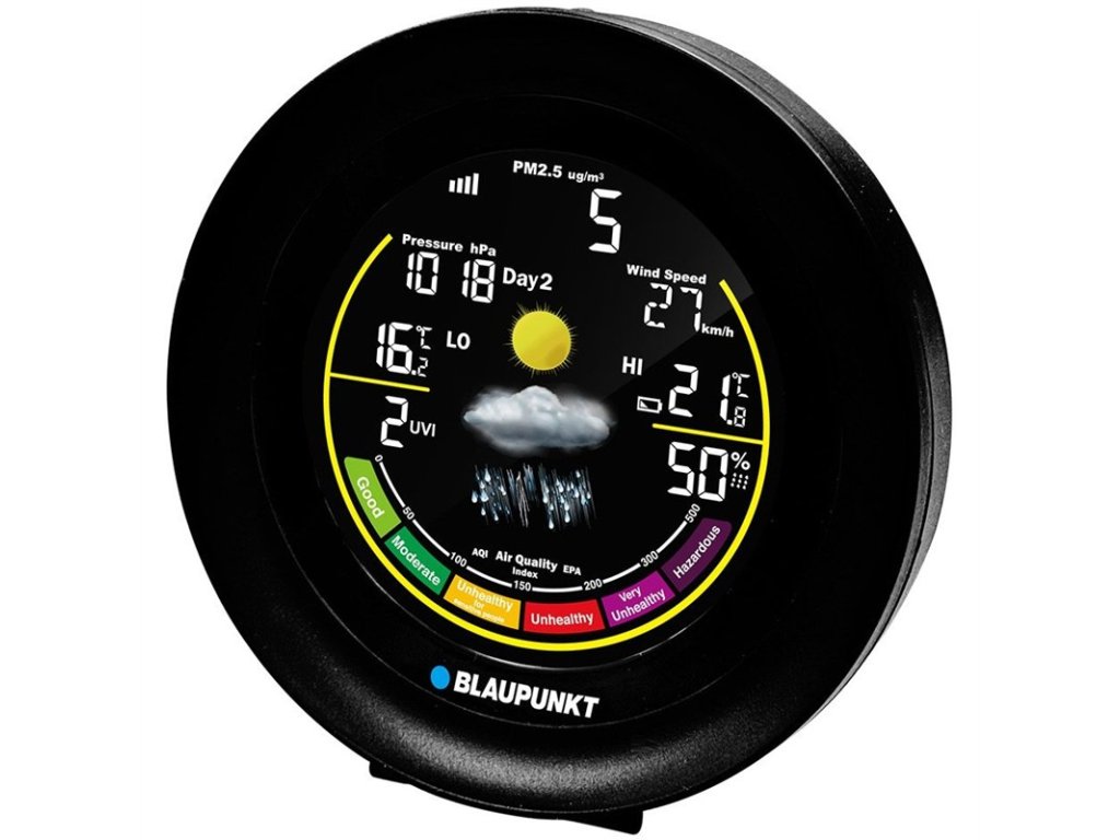 Meteorologická stanice BLAUPUNKT WS35BK APP je zařízení, které kombinuje tradiční měření počasí s moderními technologiemi Wi-Fi a mobilními aplikacemi. Díky svému elegantnímu, kulatému designu v kompaktním černém pouzdře o rozměrech 94 x 94 x 27 mm se zařízení harmonicky hodí do každého moderního interiéru a zároveň nabízí komplexní monitorování počasí.