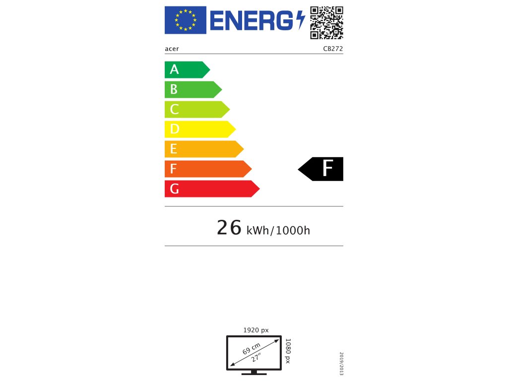 Monitor Acer CB272Ebmiprx 27",LED podsvícení, IPS panel, 4ms, 1000: 1, 250cd/m2, 1920 × 1080 Full HD, - černý