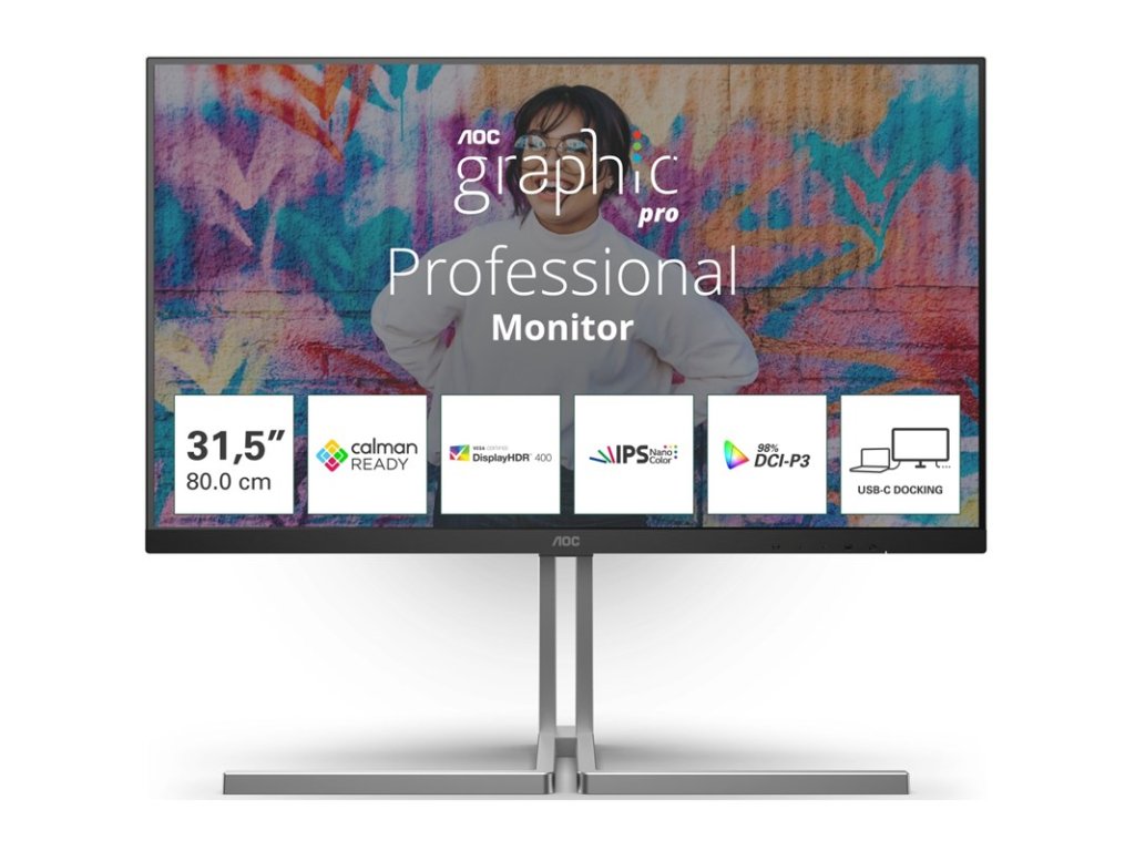 Monitor AOC U32U3CV 31.5",WLED podsvícení, Nano IPS panel, 4ms, 1000: 1, 400cd/m2, 3840 × 2160, - černý/stříbrný