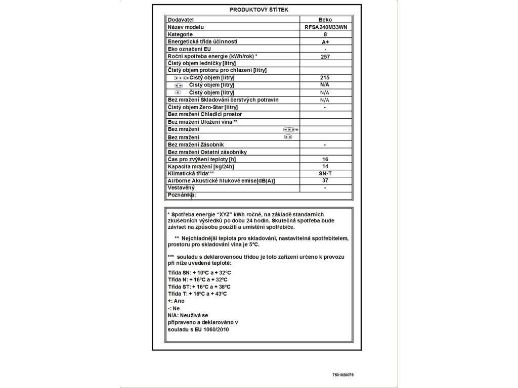 Mraznička BEKO RFSA240M33WN, šuplíková