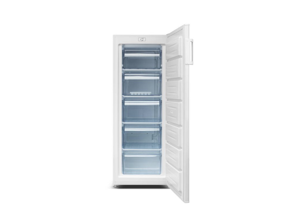 šuplíková mraznička • objem 168 l • energetická třída E • výška 142,6 cm • 5letá záruka na kompresor • výškově stavitelné nožky • nastavitelný termostat • 5 zásuvek • možnost změny směru otevírání dveří • hlučnost 40 dB • V × Š × H: 142,6 × 54,5 × 57,1 cm