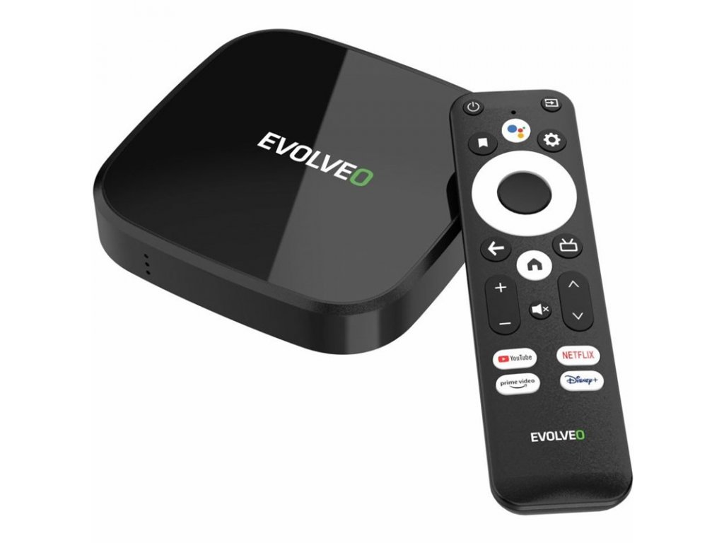 multimediální centrum, Android 11, podpora 4k Ultra HD, Dolby Audio a Dolby Digital Plus, úložiště 32 GB RAM, paměť 4 GB, připojení: Bluetooth, Wi-Fi, Ethernet, HDMI, 2 × USB-A, slot pro Micro SDHC/SDXC, Google Play Store, vestavěný Google Assistant