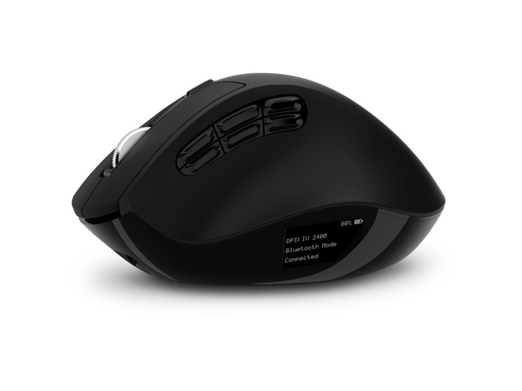 Semi-Vertikální ergonomická optická bezdrátová myš FOR HEALTH Semi-Verti DualMode with LCD display BLACK určená speciálně jako prevence proti syndromu karpálního tunelu. Nabízí možnost připojení na dva počítače díky technologii DualMode (Bluetooth 5.0 + 2.4 GHz wireless). DPI rozlišení 2400 DPI. 10 tlačítek včetně precizního otočného kolečka. Samozřejmostí USB Nano přijímač a dodávaný nabíjecí kabel.