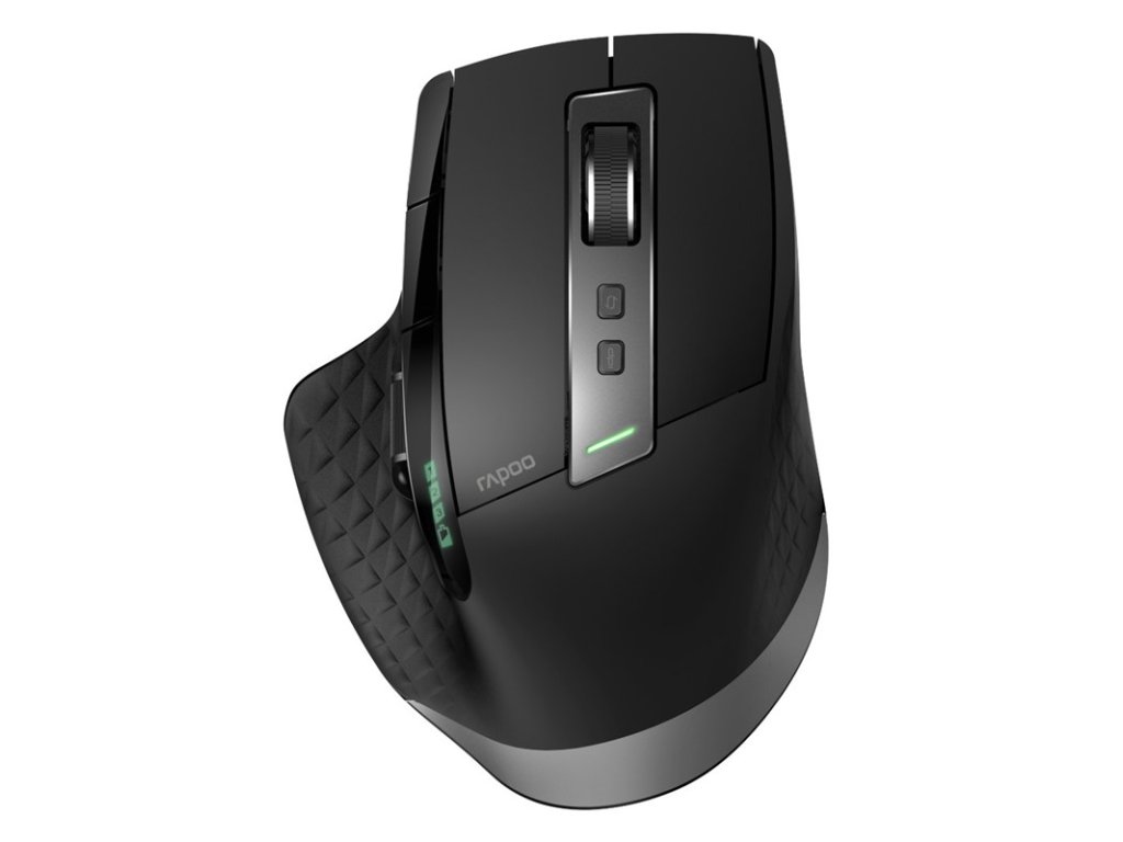 Rapoo MT750S vícerežimová bezdrátová optická myš, bezdrátová technologie: 2,4 GHz, Bluetooth 3.0 a 4.0, okamžité přepnutí mezi 4 připojenými zařízeními (automatické párování), dosah až 10 metrů a pokrytí 360 °, vysoce výkonná laserová technologie s nastavitelným rozlišením do 3200 DPI, dobíjecí akumulátor.