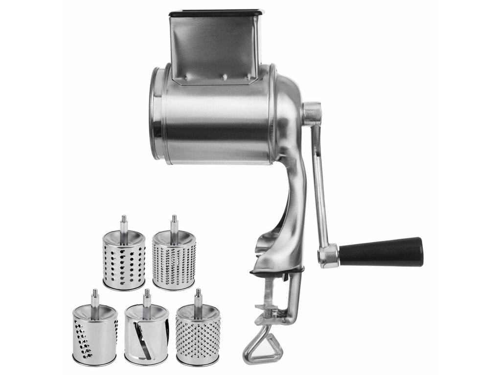 Mlýnek s 5 nástavci, který Vám pomůže snadno nastrouhat na jemno ořechy, strouhanku, sýr, mrkev, brambory nebo okurky na plátky. Uchycení ke stolu na šroub. Násypka s přítlačným nástavcem pro bezpečné mletí. Snadné sestavení, manipulace a údržba.