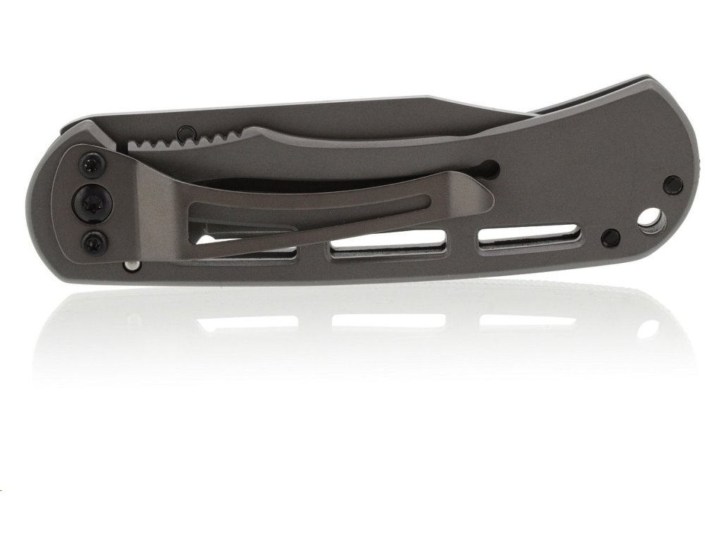 Pomocný výstupek čepele a ergonomické tvarování střenky umožní snadné a bleskurychlé otvírání nože jednou rukou. Nůž je vybaven bezpečnostní pojistkou, která se ovládá bočním posuvem palce ve spodní části rukojeti, takže nehrozí samovolné otevření. Pojistka Liner Lock brání nechtěnému zavření čepele při práci. Rukojeť s atraktivní perforací obou střenek je na zadní straně vybavena klipsem k přichycení za okraj kapsy či opasek.