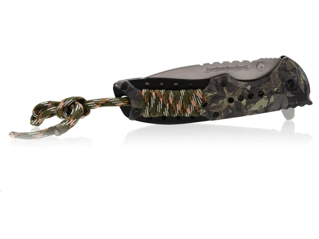 Pomocný výstupek čepele a ergonomické tvarování střenky umožní snadné a bleskurychlé otvírání nože jednou rukou. Nůž je vybaven bezpečnostní pojistkou, která se ovládá bočním posuvem palce ve spodní části rukojeti, takže nehrozí samovolné otevření. Pojistka Liner Lock brání nechtěnému zavření čepele při práci. Rukojeť je z jedné strany opletena paracordem, který lze po rozpletení použít jako šňůru. Z druhé strany je vybavena klipsem k přichycení za okraj kapsy či opasek.