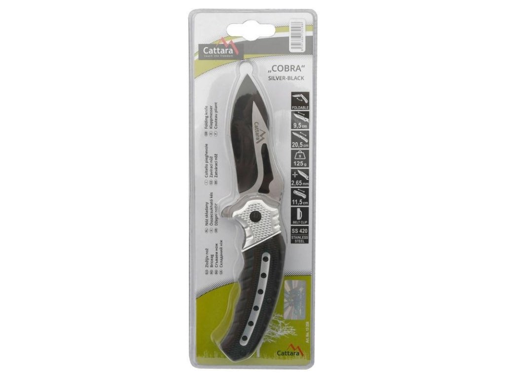 Nůž Cattara COBRA zavírací s pojistkou 20 cm, stříbrná-černá